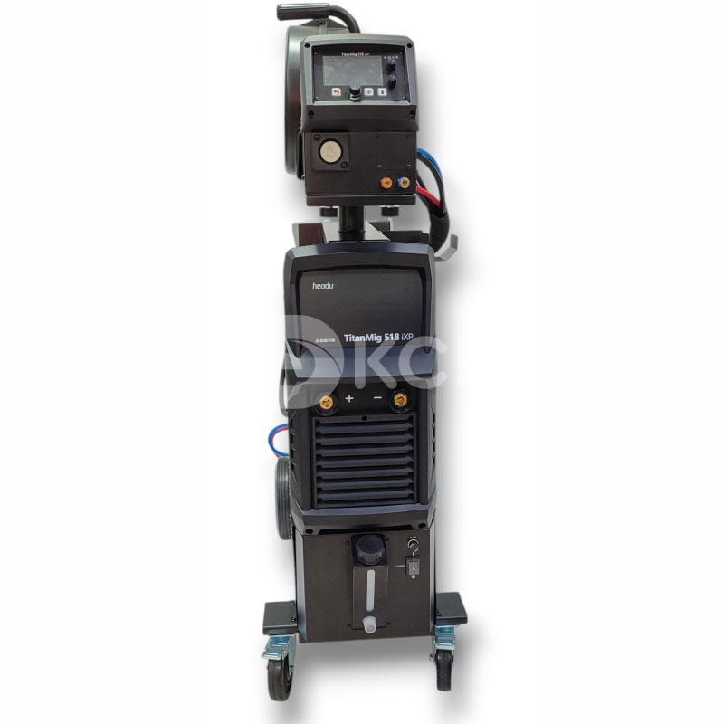 Комплект поставки: сварочный аппарат TitanMig 518iXP, сварочная горелка 500А водяное охлаждение длиной 3м, заземляющий кабель 3м, соединительный кабель 10м, механизм подачи сварочной проволоки H10, транспортировочная тележка.